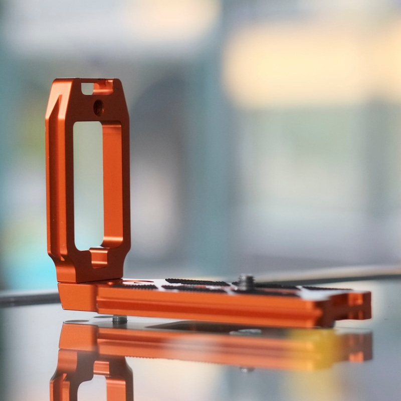 This is a general-purpose L bracket from3 Legged Thing, best known as makers oftripods named after people for no apparent reason. This thing probablyhad a name too, like "Elizabeth" or "Fitzwilliam" or something, but they don't make it any more, so we may