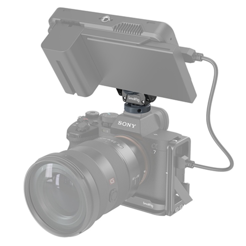 EsteMonitor Mount Lite con zapata fradeSmallRigse conecta a un monitor de 5 o 7″ y tiene una zapata fra en la parte inferior paracolocar en una cmara o un mango.