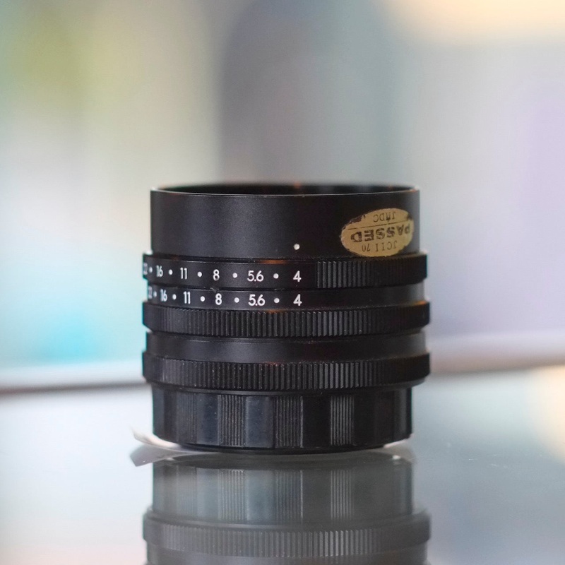 A classic M42-mount Asahi Bellows-Takumar 100mm f4 lens designed for use with a bellows: this lens has no focusing system of its own, so it won't work directly on a camera. But on a bellows, it can focus from infinity all the way to 1:1 magnification. In e