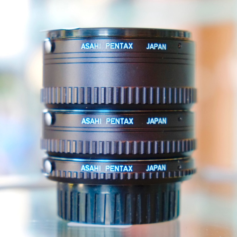 This Asahi Pentax K extension tube set includes three tubes (9.5mm, 19mm, and 28.5mm) designed to increase magnification for close-up work. These are manual tubes- there's no aperture automation or electronic communication- so you'll need a lens that has i
