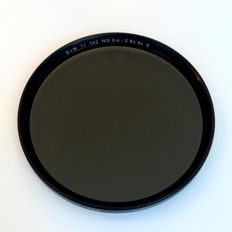 The B+W 102 ND 0.6 2BL 4X E F-Pro is a high quality neutral density filter with 2 stops of neutral density. 77mm thread size.