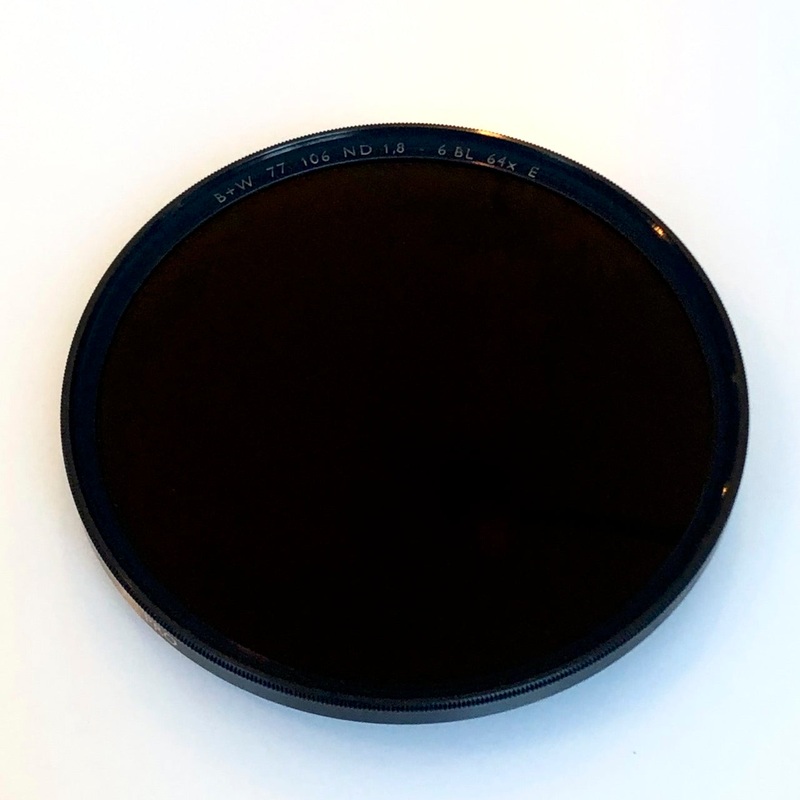 The B+W 106 ND 1.8 6BL 64X E F-Pro is a high quality neutral density filter with 6 stops of neutral density. 77mm thread size.