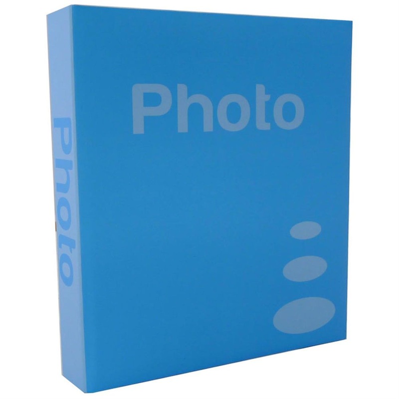 The Basic Light Blue 6.5×4.5 inch Photo Album, is a budget album, with a lovely bright blue cover and is part of a range of albums of different sizes and quantities and this one takes 200 6.5×4.5 photographs and has clear, plastic, slip in pockets. The photographs are slipped in from the spine side of the album and displayed in landscape mode one above the other, two per side. The pages are grey with a tiny circle pattern on them and there are 75 pages to accomodate all the photographs. This means that the spine of the album is nearly three inch wide, so will look fantastic on a bookcase, especially in the range of colours and the word ‘Photo’ is printed down the side in a contrasting pale blue and looks very effective.