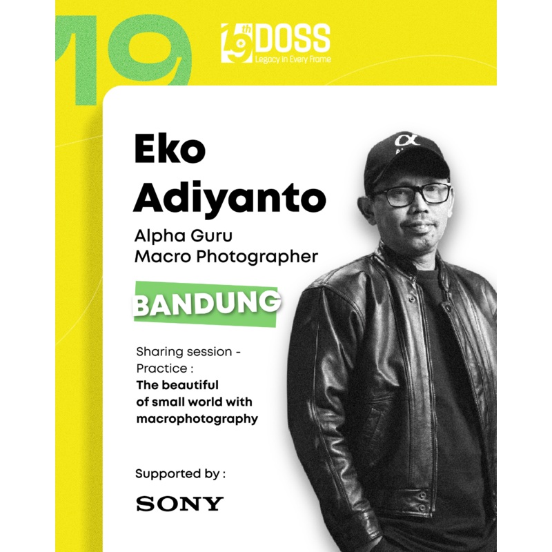 THE BEAUTIFUL OF SMALL WORLDDunia kecil, detail besar! Yuk ikut eksplorasi dunia makro Special DOSS Anniversary ke 19 bareng Eko Adiyanto, Alpha Guru & Macro Photographer yang siap berbagi ilmu dan teknik memotret dunia kecil jadi luar biasa menakjubkan. D