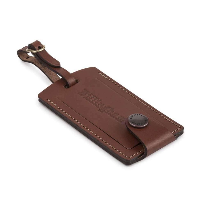 With brass buckles and studs, this strong leather tally (luggage tag) with embossed privacy flap helps to make sure your bag doesnt get lost.Like all of Billingham's leather, this luggage tag is made from genuine top-grain cowhide.