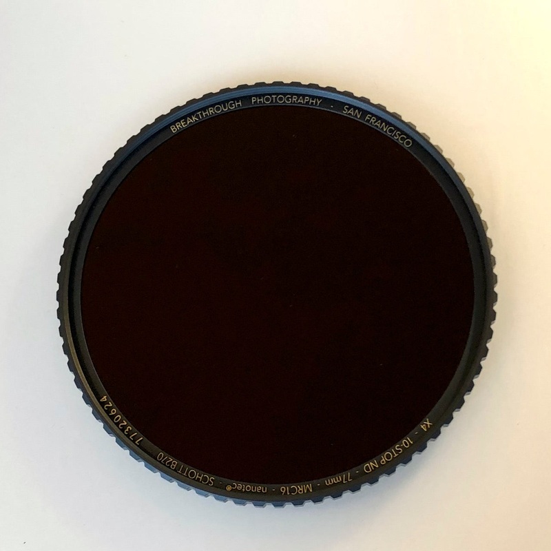 The Breakthough Photography X4 10-stop ND filter ismadefrom premium Schott B270 glass, withneutral coloursand an easy-grip frame. In excellent condition. For 77mm thread size.