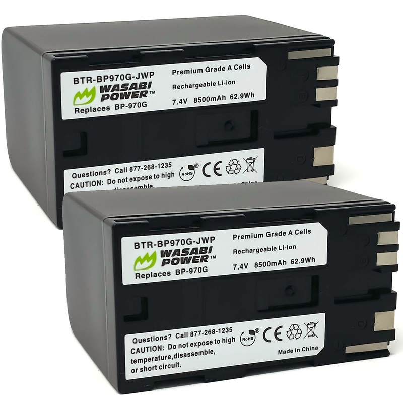 The Wasabi Power BP970G battery replaces the Canon BP-970G battery pack. The BP-970G is a larger, high-capacity battery that provides a longer run time than the Canon BP-950G. The Wasabi Power BP970G features 8500mAh which provides a longer run-time between charges. It is made with premium grade-a cells to provide maximum battery life and also comes with a 3-year manufacturer warranty. Additionally, the Wasabi Power BP970G comes fully decoded, so it will display the remaining battery life and usage time and is completely compatible with all Canon original equipment including the Canon charger. This product includes 2 BP-970G batteries.