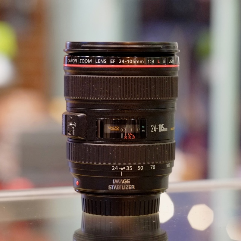 Canon EF 24-105mm f4L IS USM lens for Canon EOS film and digital SLR cameras. Light internal haze, slight grit focus and zoom controls.