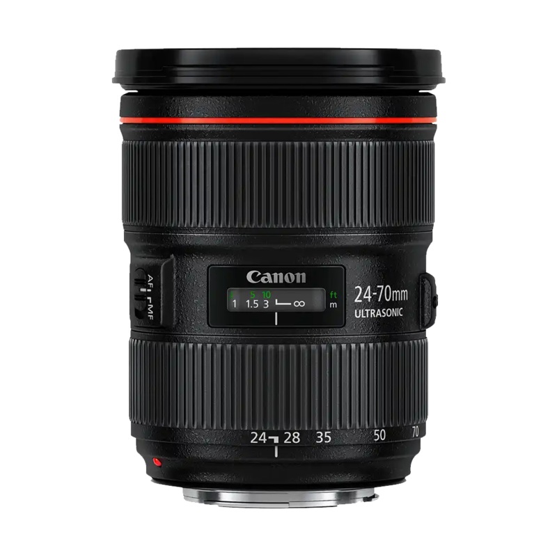 The 24-70mm focal length is one of the most popular for serious enthusiasts and professional photographers. The EF24-70mm f/2.8L II USM zoom lens takes the performance of the previous model to the next level, offering the best image quality available in a lens of this zoom range. Centred on the standard focal length of 50mm, it offers a zoom range from wide-angle to short telephoto, making it ideal for shooting everything from landscapes to portraits in one lens.
