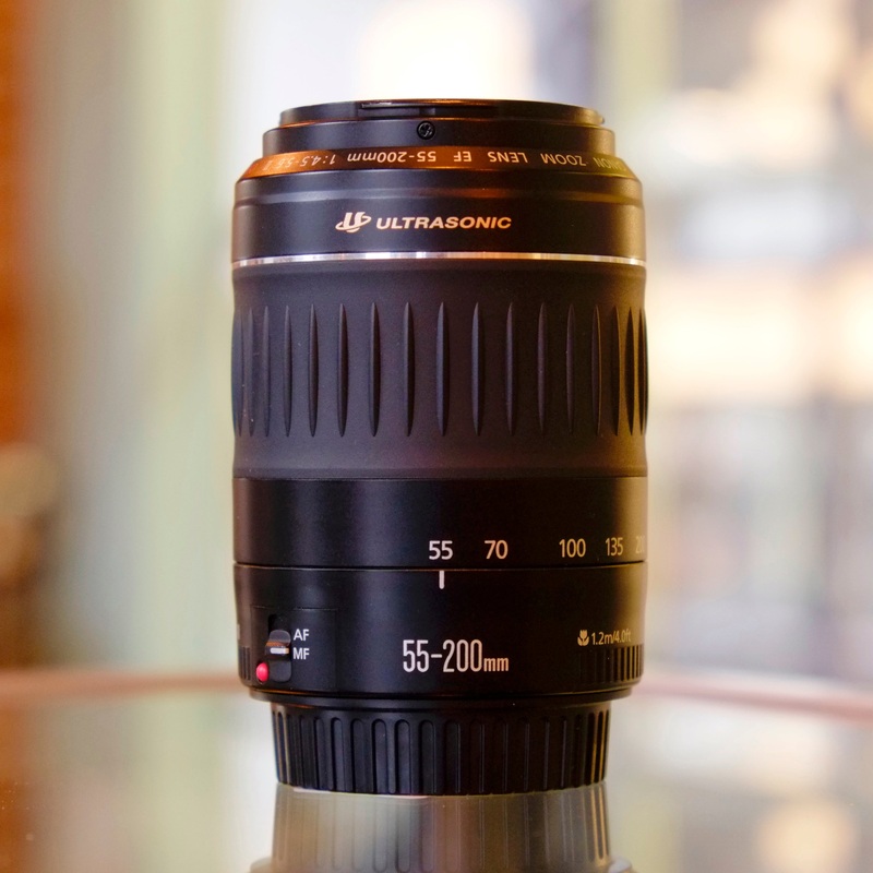 TheCanon EF 55-200mm f4.5-5.6 II USM is a compact telephoto zoom lens suitable for film or digital EF-mount cameras. No image stabilizer here, but image quality is solid and autofocus performance is good. In excellent condition, with clean glass and only m