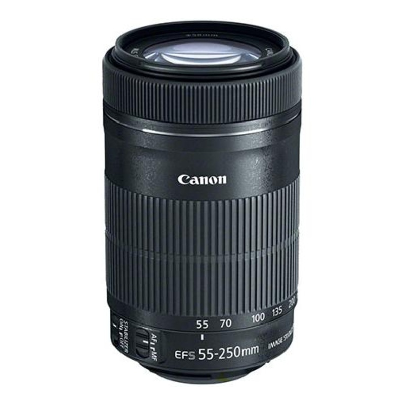 Zoom tlobjectif EF S 55250mm f/45.6 IS STM pour botiers APS C, monture EF S. Optique lgre et compacte, parfaite pour la photographie de sujets loigns tels que faune, sport et portrait distance.