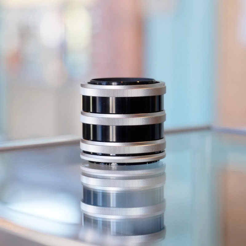 Canon Extension Tube M Set for FD and FL lenses. Include two 20mm tubes, one 10mm tube, and one 5mm tube. In excellent condition, with original box (though the box has seen better days)