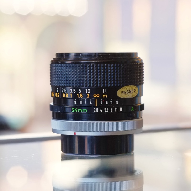 A fast wide angle lens for Canon FD mount. Smooth focus, good diaphragm, light dust, one very small spot of likely fungus.