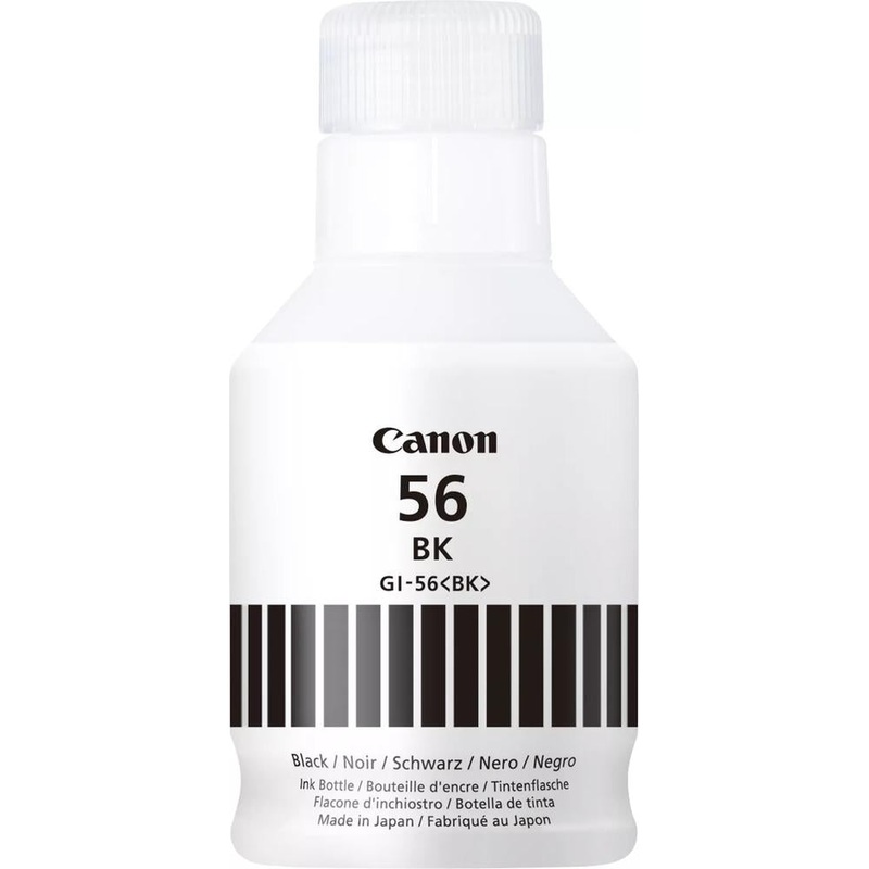 Benefit from extended time between refills and maximise cost savings with the Canon GI-56BK Ink Bottle. The black pigment-based formula is ideal for business use, and resists smudging and friction, ensuring each print produces professional-quality documents and photos. Each bottle can produce up to 6000 pages, or 9000 pages when used in Economy Mode, ensuring reduced interruptions during printing and more consistent, reliable printing. The improved no-squeeze design ensures mess-free refills and is specially created for select refillable ink tank printers.