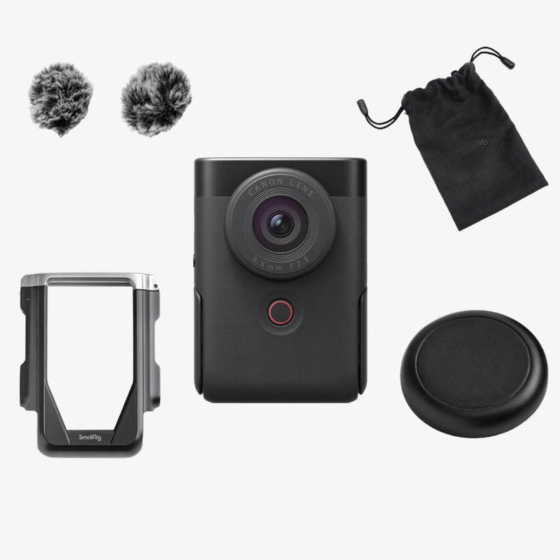 Canon PowerShot V10 Kit Vlogging Camra compacte avec capteur 1 pouce, objectif ultra grand-angle 19 mm f/2.8, enregistrement vido 4K, stabilisation intgre, cran inclinable 180, micro stro intgr et accessoires essentiels inclus pour une utilisation immdiate.