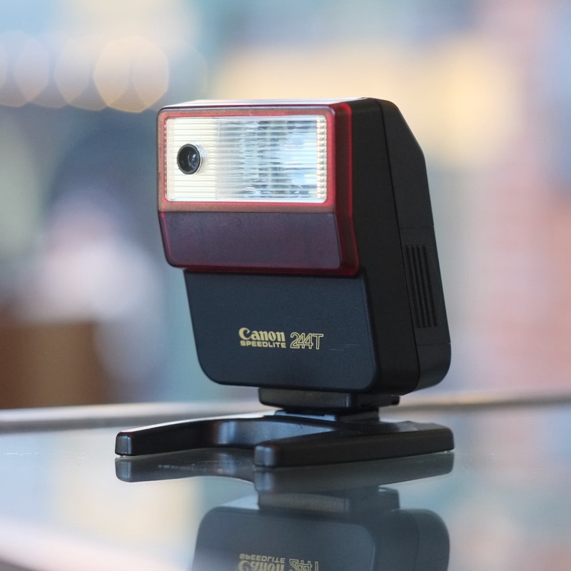The Canon Speedlite 244T is a compact on-camera flash designed for use on select Canon FD cameras (notably, the T50, T70, and T90). It can be used on other cameras with a standard ISO hot shoe, of course, but it'll fire only in full manual mode. IN excelle