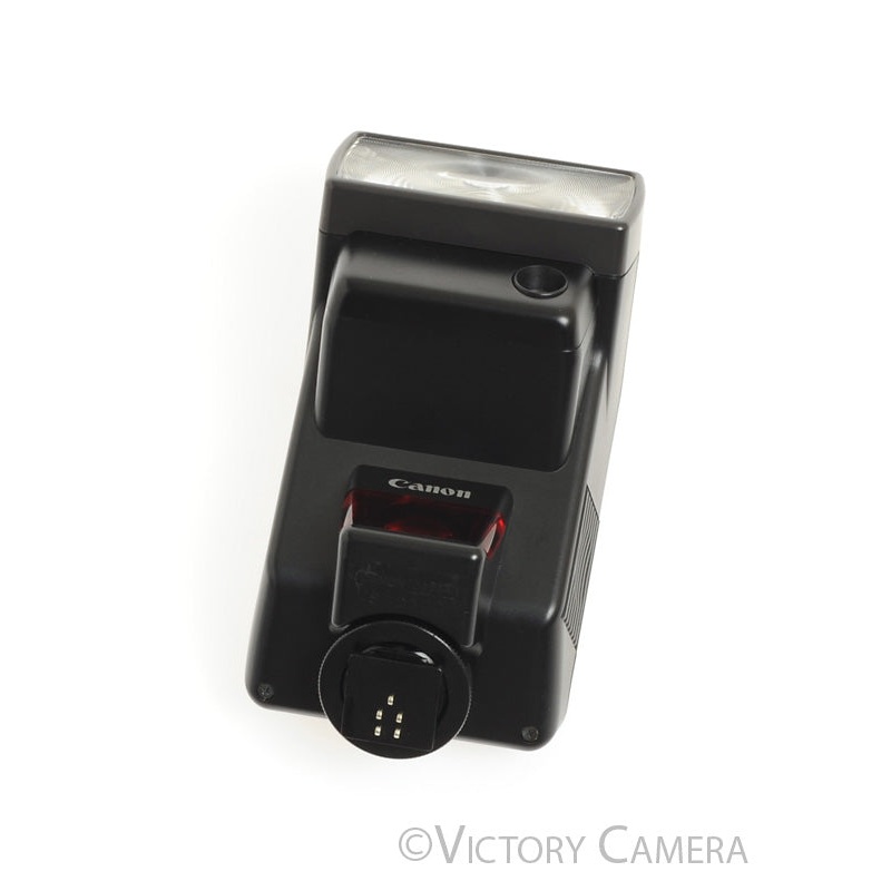 This is a nice Canon brand flash for analog cameras. Note that it should not be used on a digital camera. It is in mint- condition and works perfectly. The flash is strong and the battery compartment is clean. The leather case is included. SKU: 250102-18
