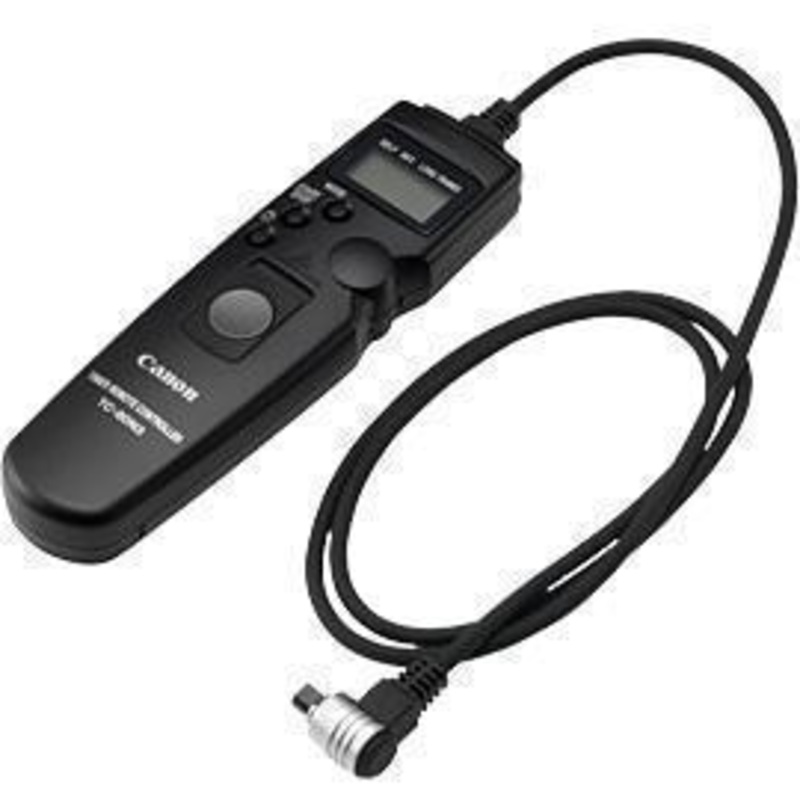 The Canon TC-80N3 Timer Remote Control is a remote switch with a 80cm cord and a self-timer, interval timer, long-exposure timer, and exposure-count setting feature. The timer can be set anywhere from 1 second to 99 hours, 59 minutes, or 59 seconds. A dial