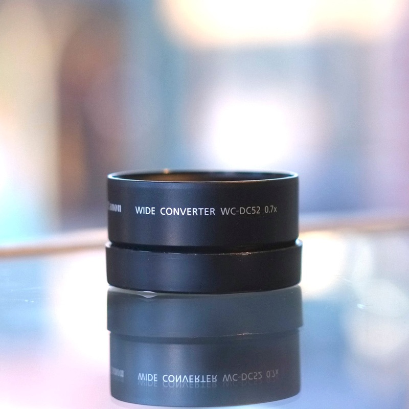 The Canon WC-DC52 is a 0.7x wide-angleadapter, originally designed for certain Canon Powershot models, but alsomountable on most lenses with 52mm threads. Be aware: image quality is dodgy on a full-frame camera- see the sample image- and while I think it t
