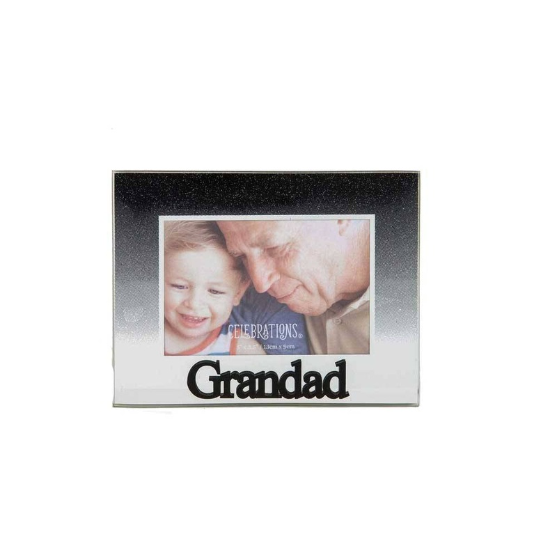 This Celebrations Grandad Black Glitter Glass Frame with a Mirror Finish offers a functional and uplifting keepsake for any special occasion. A perfect gift for the price conscious consumer, its landscape aperture measures 5" x 3.5" (13x9cm) and features a