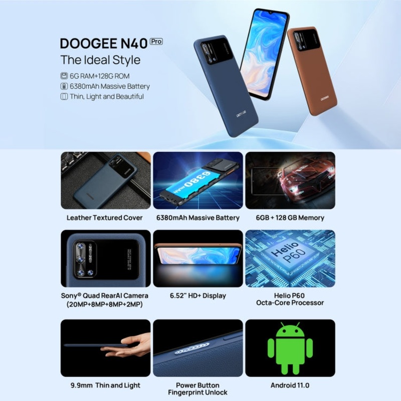 Capture the perfect moment you have always dreamed of with the Sony 20MP Al main camera paired with an advanced Al algorithm, all on the DOOGEE N40 Pro