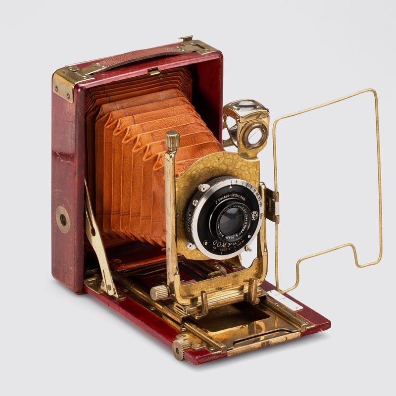 --- No information was found of this tropical Doxa 9x12cm folding plate camera made of mahogany and brass with brown leather bellows, Doxa 6.3/13.5cm lens in Compur shutter. The camera was possibly built by Welta for Birnbaum, is in excellent condition. --