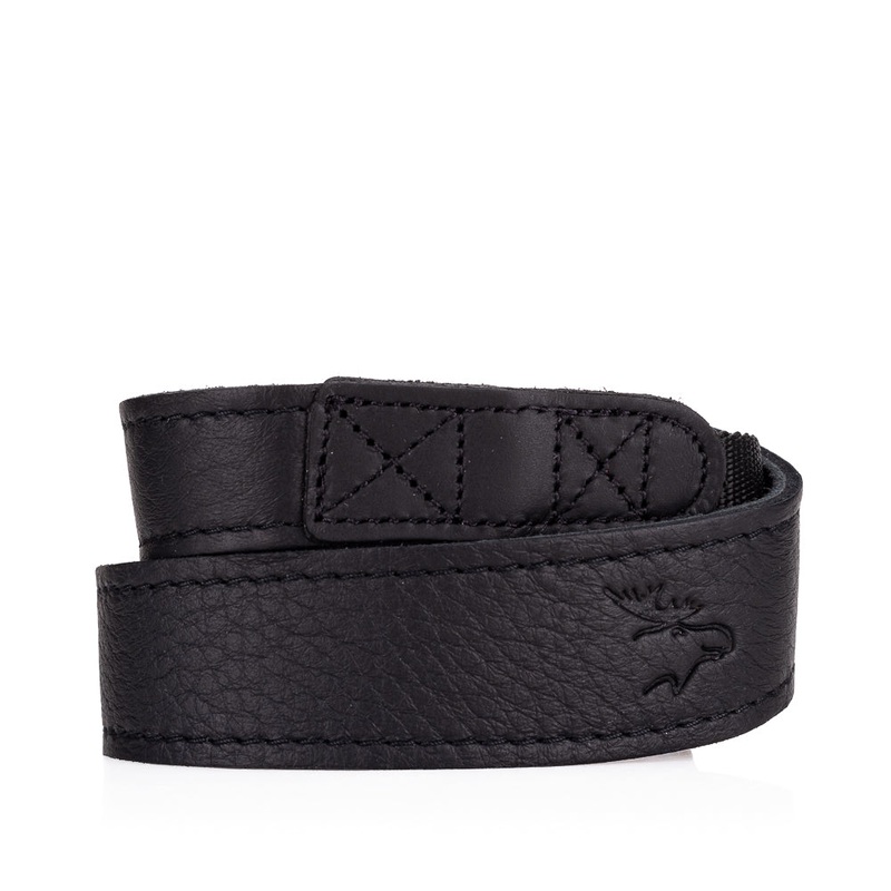 EDDYCAM Elk Leather Neck Strap, 35mm Wide, Black/Mongolian Yak with Black Stitching