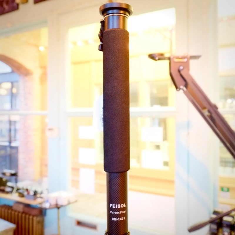 The Feisol CM-1471 is a heavy duty carbon fibre monopod with twist-lock legs. Lightweight and easy handling, with a standard 3/8" threaded connection for head attachment (and it's reversible to a standard 1/4" if you just want to attach your camera directl
