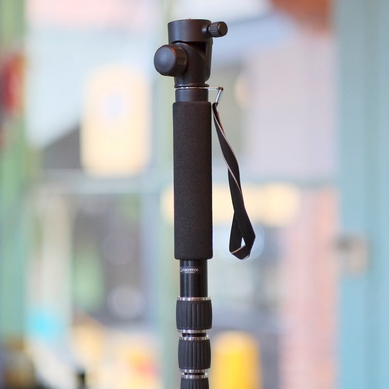 This Giottos monopod features big, easy-to-grip leg locks and a sturdy tilt head. Extends to just over 5 feet. Not the most lightweight monopod you’ll ever handle, but it’s well made and should hold anything reasonable.