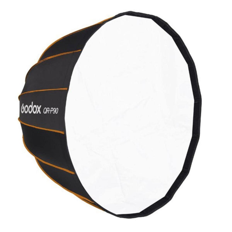 Godox QR-P Godox quick release parabolic softbox adopts an impressive quick release system for rapid setup and breakdown. Highly versatile and compatible, it provides you reliable light quality and various creative expressions. Available in 3 different siz