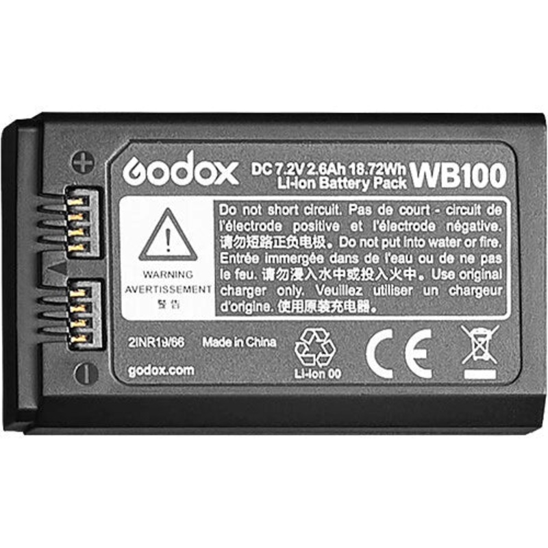 Godox WB100OverviewKey FeaturesLithium-Ion Battery (7.2V / 2600 mAh)Provides Power to the AD100proRemovable, RechargeableTheWB100 Battery for AD100pro Pocket FlashfromGodoxprovides power to the flash. The 7.2V / 2600 mAh lithium-ion battery is removable an