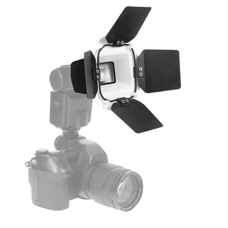 The Go Flash Barn Door create a focus on the flash when taking portrait shots. The barn door can be rotated to change the direction of the light beam to a selected area and are great for product photography and illumination of larger surfaces.