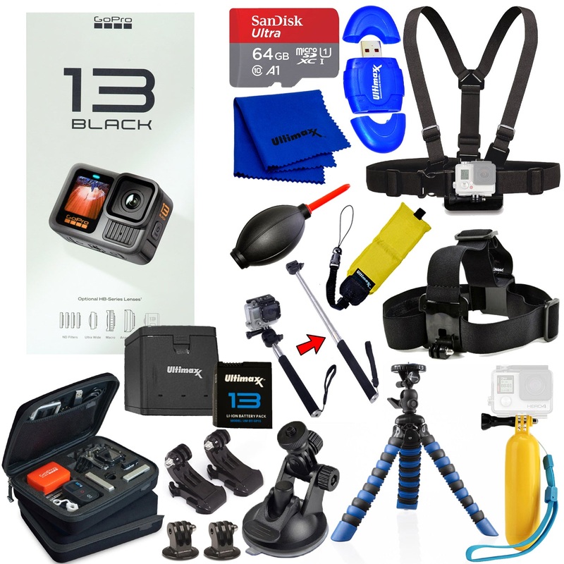 GoPro HERO 13 HERO13 Black 27MP Action Camera + EXT BATT 64GB Bundle