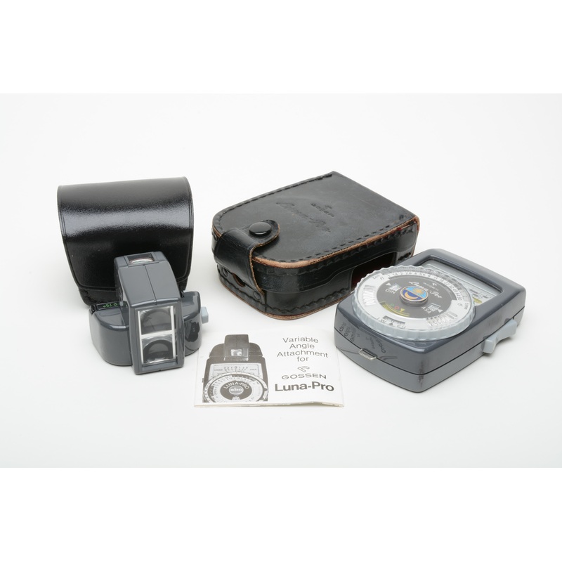 Excellent++ Condition, Tested, AccurateGossen Luna-Pro Incident Light Meter (Gray Version)Includes Fitted Cases + Variable Angle Attachment and manualSerial #524334Cosmetically very clean, light signs of use, light marks or scratchesAll functions are teste