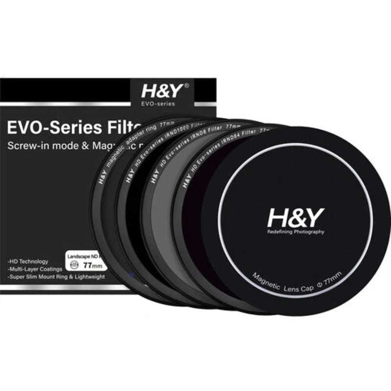 ThisHD EVO-Series Landscape ND Filter KitfromH&Y Filtersincludes 72mm EVO-IRND8 3-stop, EVO-IRND64 6-stop, and EVO-IRND1000 10-stop filters, plus one 72mm magnetic adapter ring and a 72mm magnetic lens cap. As part of the EVO series, the filters have a dual-mount design. They have 72mm threading on the rear and front and can be screwed onto your lens, or they can be attached magnetically using the included magnetic adapter ring. The filters are made with multicoated HD optical glass and feature an aluminum filter ring.