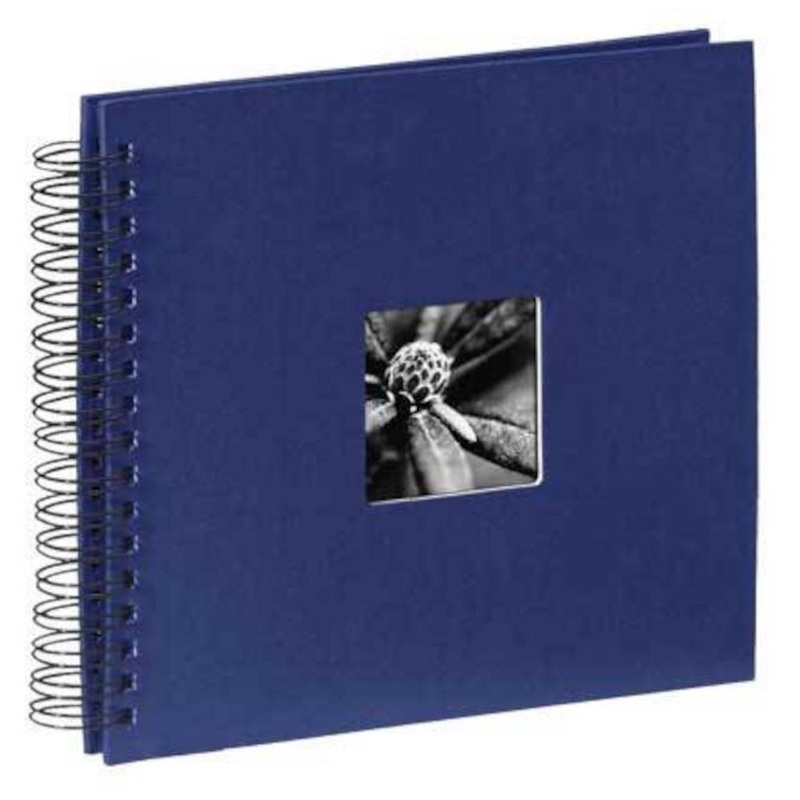 The Hama Spiral Photo Album in blue has 25 pages, 50 sides, of black acid-free photo card for mounting photos as small as Instax and as large as 10×8 inches. Made from high-quality materials, this album is bound by a strong plastic spiral and each page is protected by glassine interleaves so your photos remain in the best condition. The plain blue hard cover has a 3-inch square aperture cut out, which you can use to place a favourite photo or title for a customisable finish.