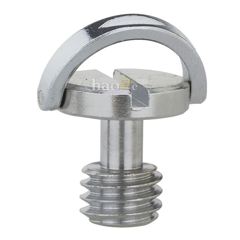 Features:3/8" metal male thread with flat head screwdriver slot and hinged "D" Ring.Can be used with Camera, Tripods, Monopods, Telescopes, Ball Heads, Lens Collars, Lens Plates, Quick Release Plate and Other DIY used.Material: Stainless SteelWeight: 9g ea
