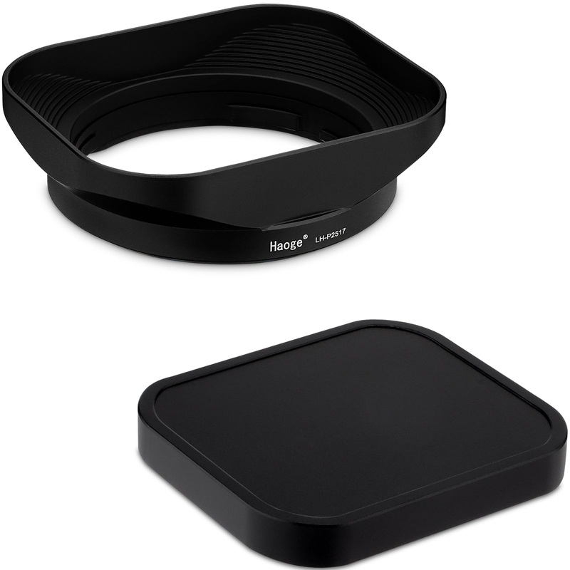 Haoge LH-P2517 Square Metal Lens Hood is designed for Panasonic LUMIX G 25 mm/F1.7 ASPH lens H-H025 . This bayonet-mount lens hood shades the lens from stray light, prevent or limit lens flare, improving your contrast and image quality. Provide additional protection to the camera and lens from accident; scratching.