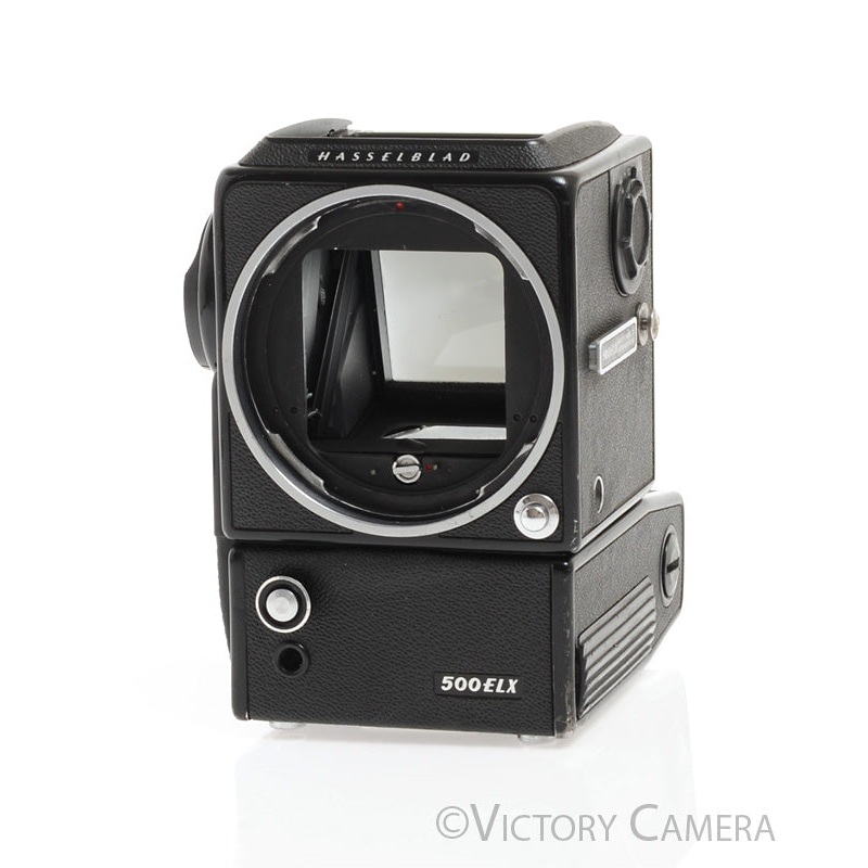 This is the 500ELX, the Hasselblad with a motordrive. A very similar Hassy went to the moon.It is in good condition with moderate wear (see photos) and works perfectly. The shutter is accurate and the mechanical functions work perfectly. The battery compar