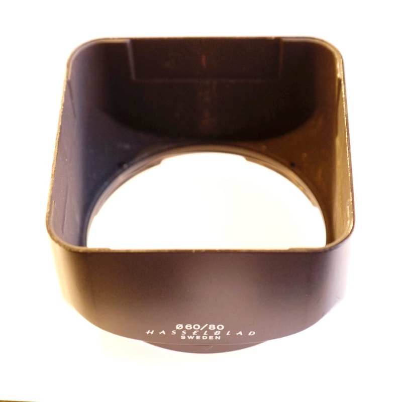 Hasselblad B60 lens hood for 80mm lenses. A standard hood for the CF Planar 80mm lens. In good condition, with minor cosmetic wear which does not affect function.