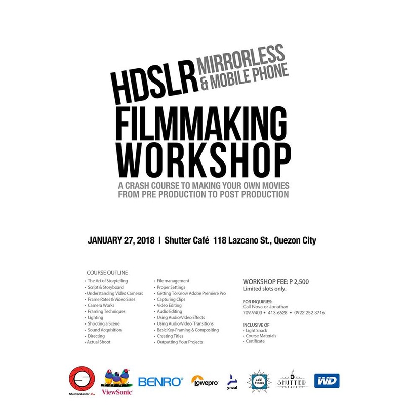 We are pleased to invite you to a whole day event about film making on January 27, 2018 with Photography mentor and Art Director, Rolly Magpayo.