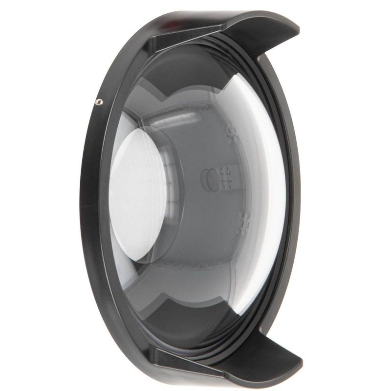The dome port replaces the standard flat port on the housing. Simply unthread the standard flat port and thread in the dome port. We recommend a rubber strap wrench commonly available at your local hardware store or as product # 0945.01 (not included). The included dome shade reduces reflections, protects the dome, and allows you to set the housing down on its face for easy assembly and disassembly.