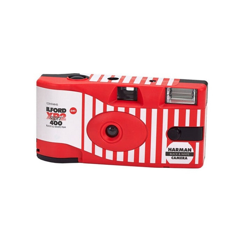 TheXP2 Super Single Use Camera with 27 ExposuresfromIlfordis pre-loaded with ISO 400 XP2 filmandprovides high contrast, fine grain, black and white images that can be developed at any C41-type photo lab. The camera has a built-in flash,largeviewfinderand s