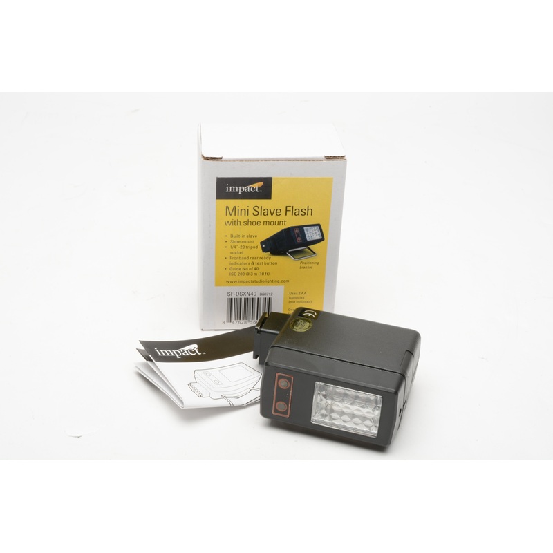 Mint, BoxedImpact SF-DSXN40 Mini Slave Flash With Hot Shoew/InstructionsNo signs of useLooks and operates as newAA batteries not included