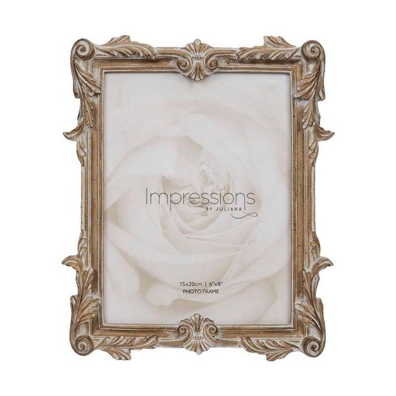 A beautiful baroque style carved wood effect resin photo frame. From IMPRESSIONS - traditional and timeless photo framing to preserve treasured memories.These beautiful frames feature:Distressed bronzed wood effectIntricate baroque designSturdy resin const