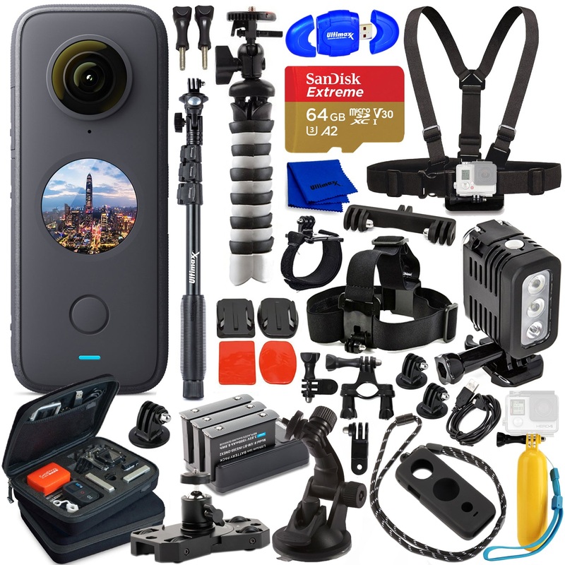 Short DescriptionDual-Mode 360 & Standard Pocket Camera5.7K Dual-Lens 360 Auto-Stitched CaptureSingle-Lens Standard Camera Mode33' Waterproof with No Housing RequiredLive-View Touchscreen6-Axis GyroscopeiOS/Android AppKit IncludesInsta360 ONE X2Ultimaxx Re