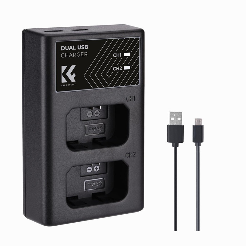 K&F Concept NP-FW50 Battery Charger, Dual Slot Quick Charger for Sony A6000, A6500, A6300, A6400, A7, A7II, A7RII, A7SII, A7S, A7S2, A7R, A7R2, A55, A5100, A5000 Camera-KF28.0009)