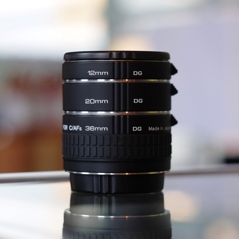 A set of three extension tubes for Canon EF mount: 12mm, 20mm, and 36mm. These tubes have the electronic contacts necessary to maintain autofocus and autoexposure capabilities. If you're curious about dabbling in macro work, this is an inexpensive way to g
