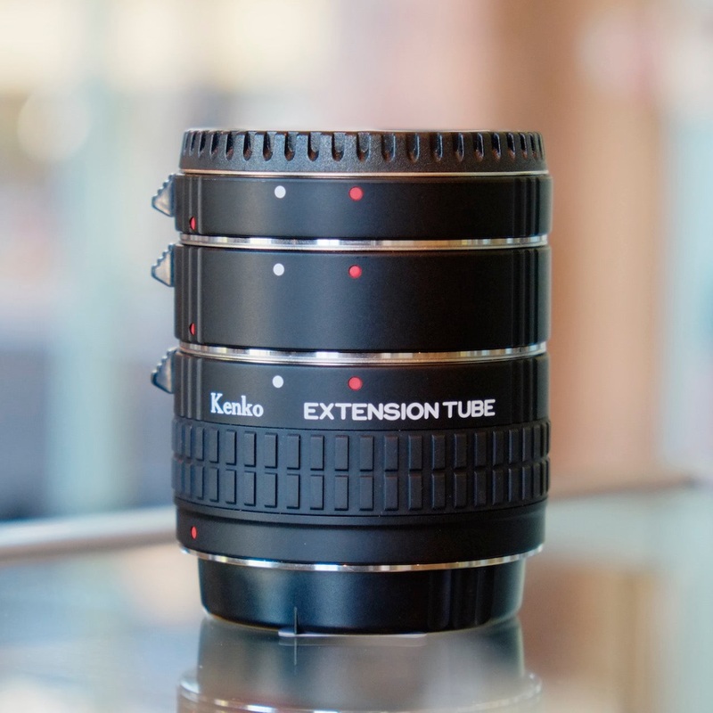 A set of three extension tubes for Canon EF mount: 12mm, 20mm, and 36mm. These tubes have the electronic contacts necessary to maintain autofocus and autoexposure capabilities. If you're curious about dabbling in macro work, this is an inexpensive way to g