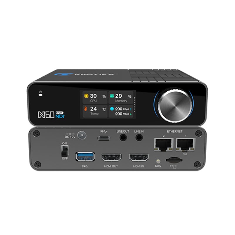 NDI et NDI|HXCouvre tous vos besoinsKILOVIEW N60 est un tout nouveau convertisseur NDI fonctions compltes.Adoptant les technologies FPGA de pointe, l'algorithme AVC/HEVC de niveau avanc et l'algorithme NDI, le KILOVIEW N60 prend en charge le codage/dcodage